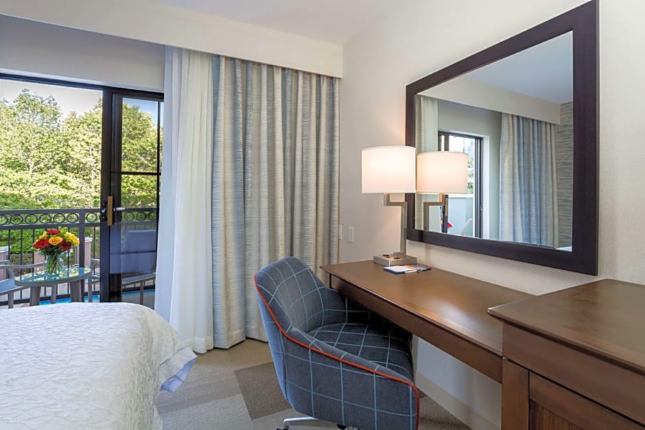 This mobility and hearing accessible room features a roll-in shower. The room also has a visual alarm and notification devices for the doorbell or door knock and incoming phone calls.